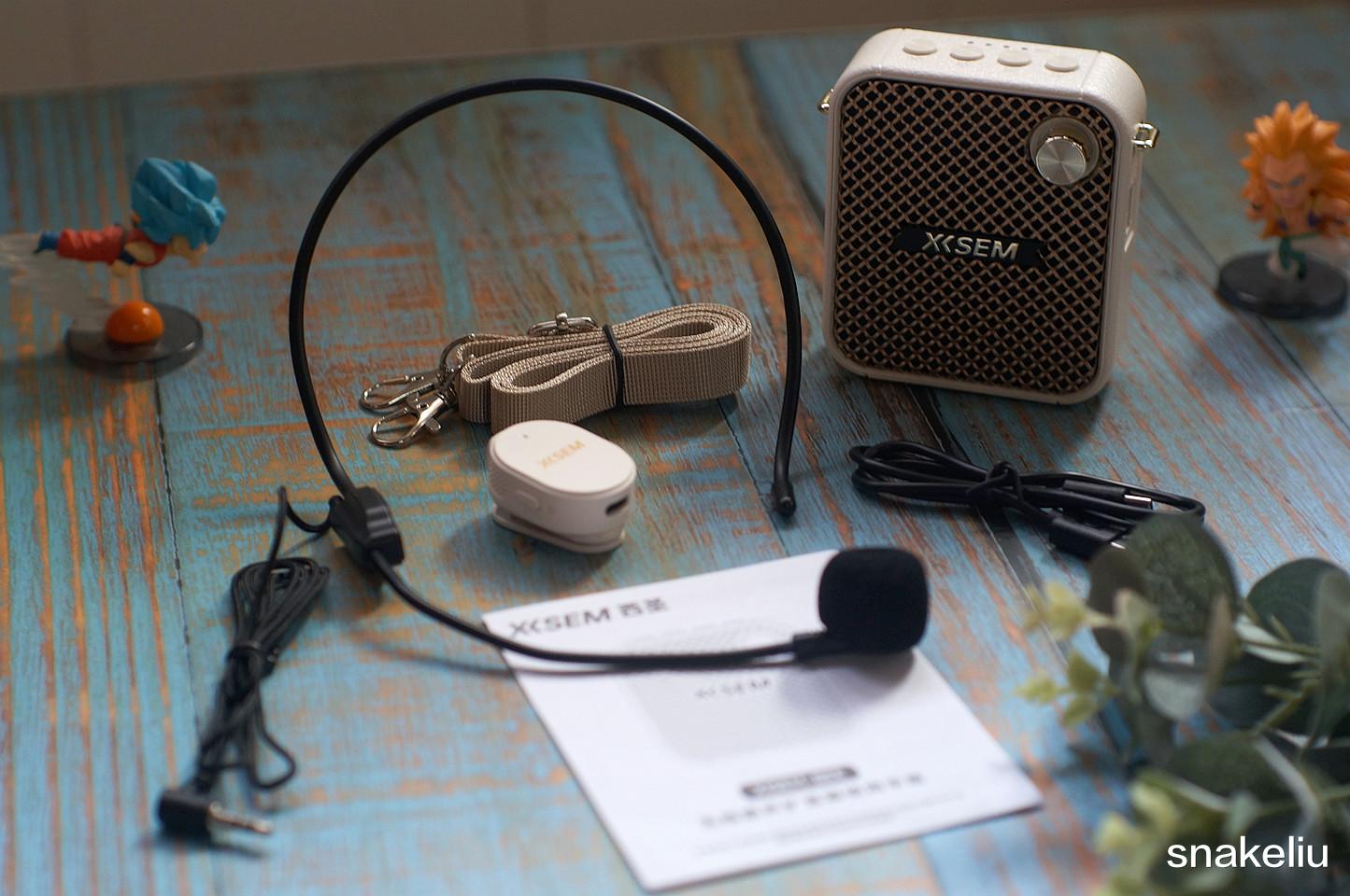 西圣BEE这套扩音器,在普通扩音器有线麦克风的基础上,设计了一支无线麦克风,让这类出品的实用性更强了。看它的产品配件,不仅保留了传统有线麦克风,挂绳、充电线、说明书,还有一个很不错的无线麦克风。