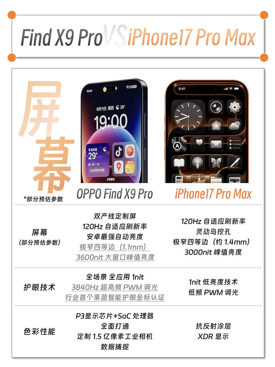 从目前的预热来看,作为国产阵营的一份子,OPPO Find X9系列在面对iPhone17系列,也是丝毫不输,影像上推出许多新技术,体验叫板相机,更别说还有天玑9500+ColorOS 16+7000+mAh大电池这三驾「马车」并驾齐驱,性能、流畅度、续航都不容小觑。