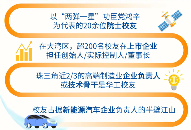 更不要说华工被誉为“企业家的摇篮”、新能源汽车领域的“黄埔军校”,且华南地区超60%的企业高管均毕业于该校,从家电“华南三剑客”到新能源汽车及供应链的核心人物,很多都是华工校友。而这些校友们不仅能够为华工学子提供实习实践和就业机会,亦能为学生带来丰富的创业支持,帮助他们开始自己的“搞钱”事业。