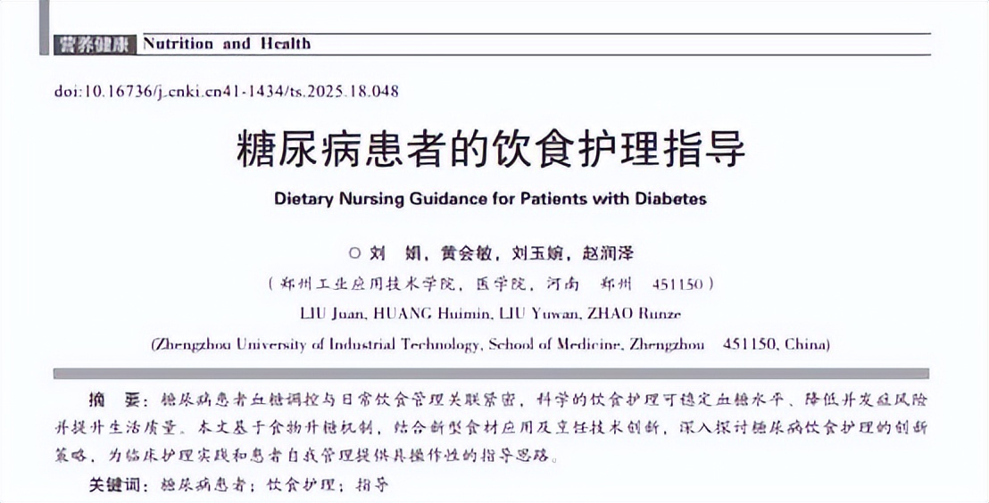 糖尿病患者的饮食护理指导,刘娟,现代食品,2025-09-28