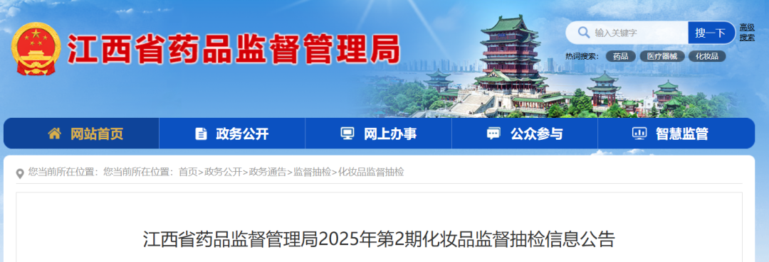 日前,江西省药品监督管理局(以下简称:江西省药监局)发布了2025年第2期化妆品监督抽检信息公告,对10批次不合格化妆品进行通报。