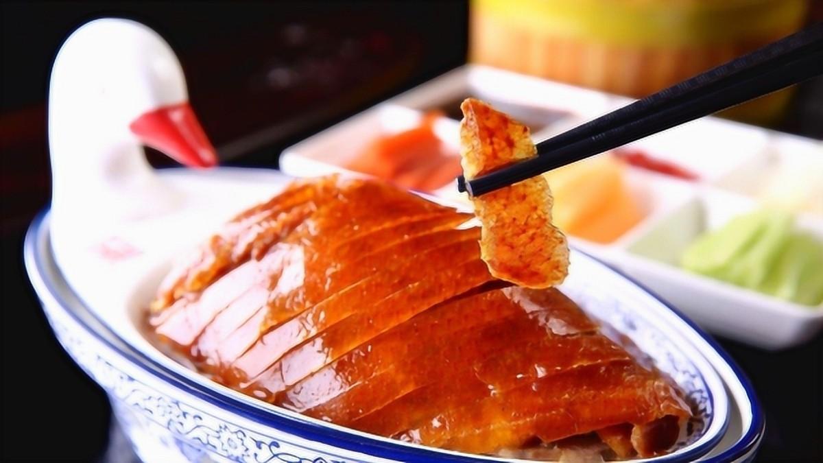 “北京呀有一道菜,外面是焦焦脆脆的橘黄色鸭皮,里面是白白嫩嫩的鸭肉,裹上葱花,蘸上甜酱吃一口,唇齿余香,回味无穷。”