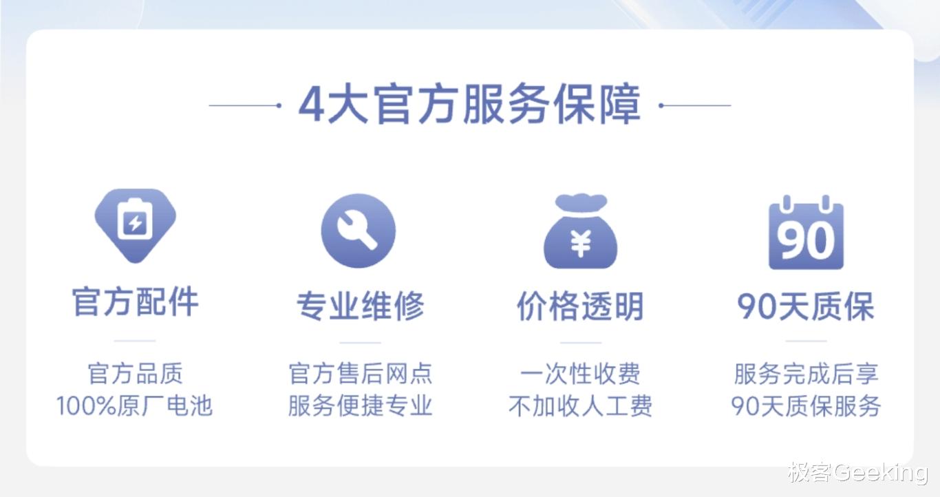 如果发现自己的手机续航时间明显变短,或者电池健康度较差,可以通过这一 8 折活动换上一块全新的电池,让手机的续航满血复活,焕发新生。小米售后更换的新电池是原厂配件,而且换新的电池支持官方 90 天质保。