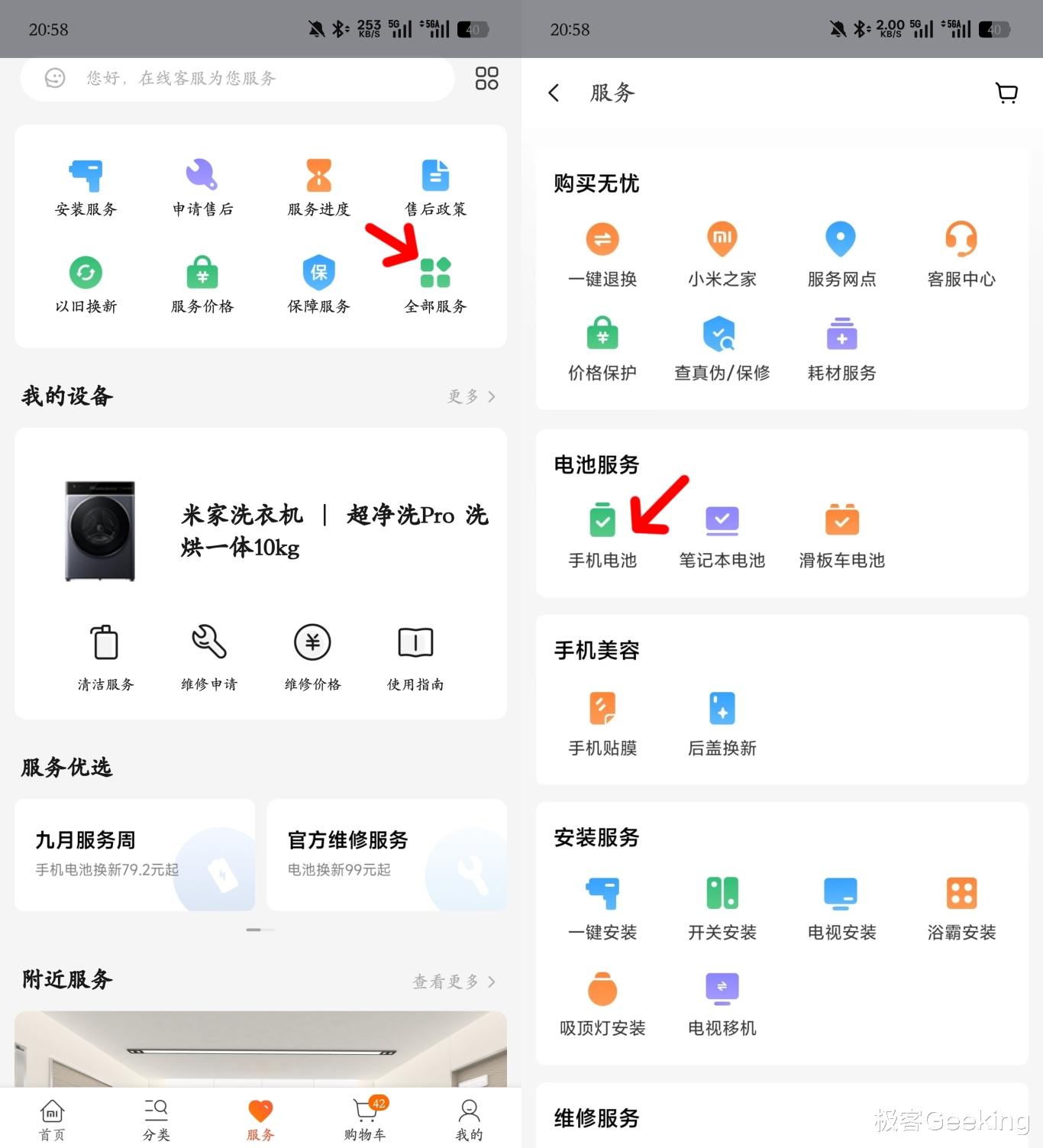 下单方法很简单,首先打开小米商城 App,依次打开「服务」-「全部服务」-「电池服务」-「手机电池」页面。