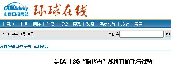 环球在线:美EA-18G“咆哮者”战机开始飞行试验 2006-04-20