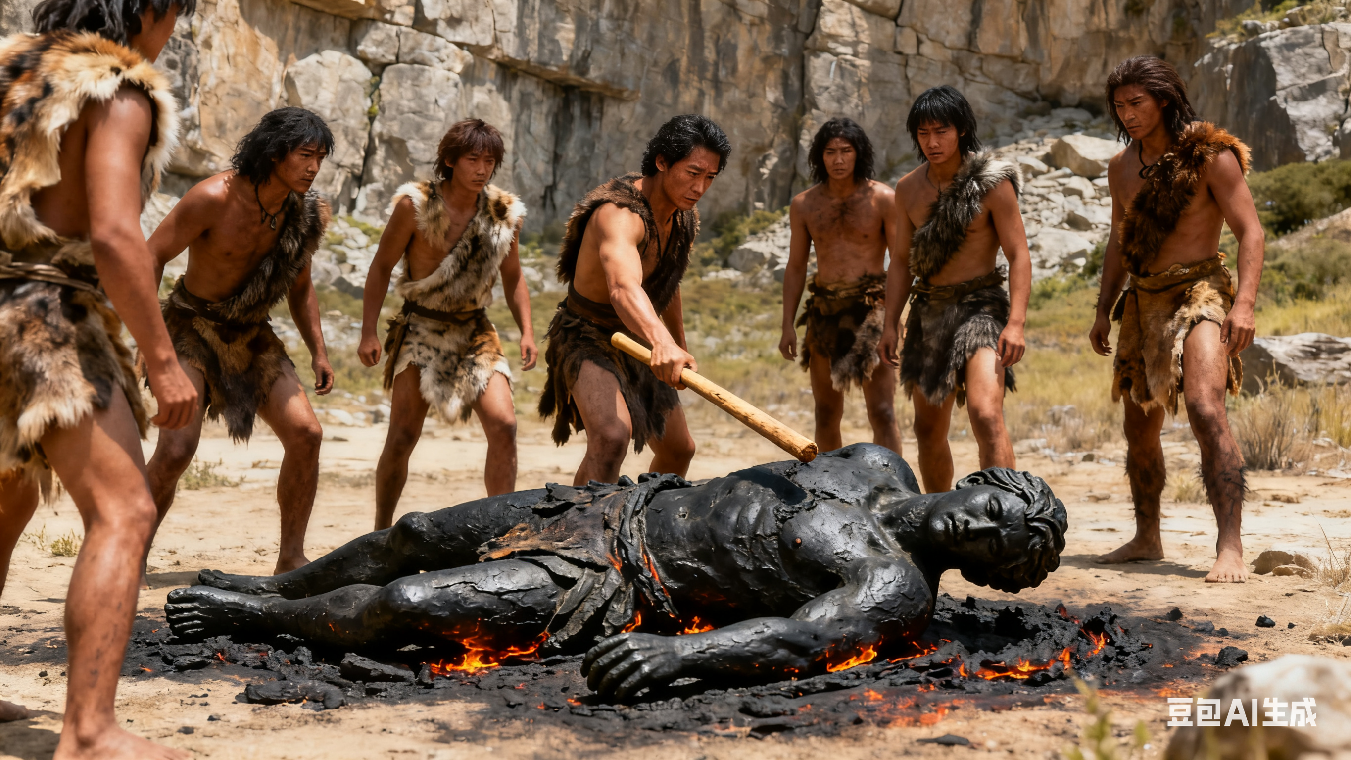 这些原始人外形粗犷,穿着兽皮裙,手持木棍,活似《西游记》中的大师兄、二师兄与沙师弟。