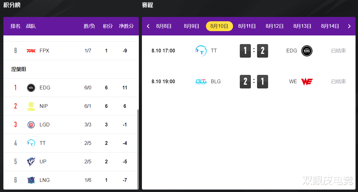 第三阶段刚刚开打就有很多队伍开始换人,甚至打的过程中看看还有那些“正在失业”的队员适合自己的队伍并开始补强。而作为涅槃组第一个晋级的队伍,EDG在刚开始就对辅助位置进行了更换。不得不说,简直就是换人如换刀,第一轮EDG就打出了统治力的存在,在对战组内的队伍时都打出了2:0,连胜10小局,到了第二轮第一场比赛对战TT,在先输一局的情况下连扳两局,成功击败TT,自己也顺利成功晋级。