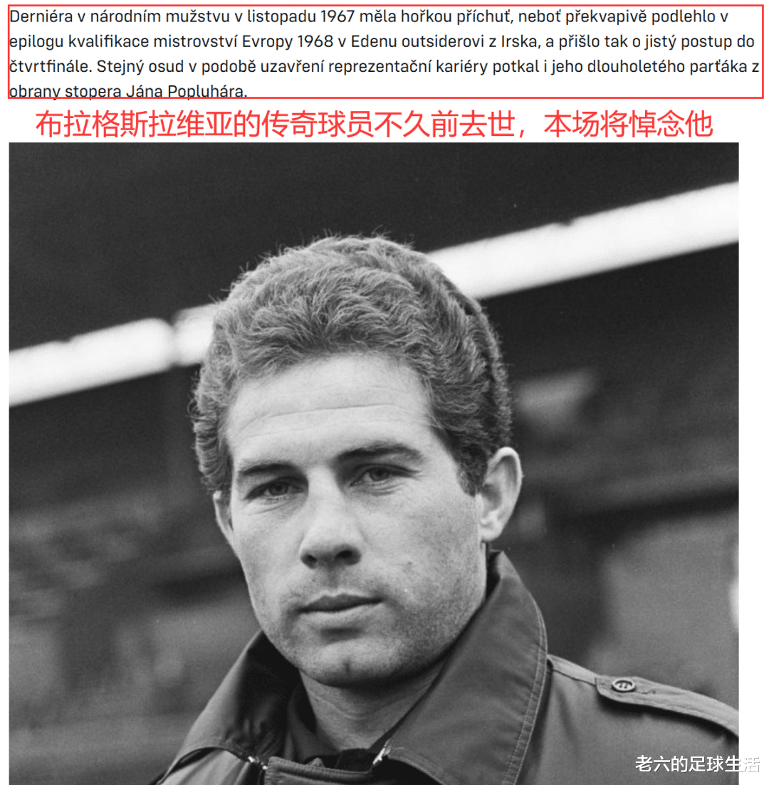 值得一提的是获得过捷克足球界最高奖项瓦茨拉夫·吉拉奖的前布拉格斯拉维亚的传奇右后卫杨·拉拉在不久前的生日后去世,本场比赛也会是对他的悼念。
