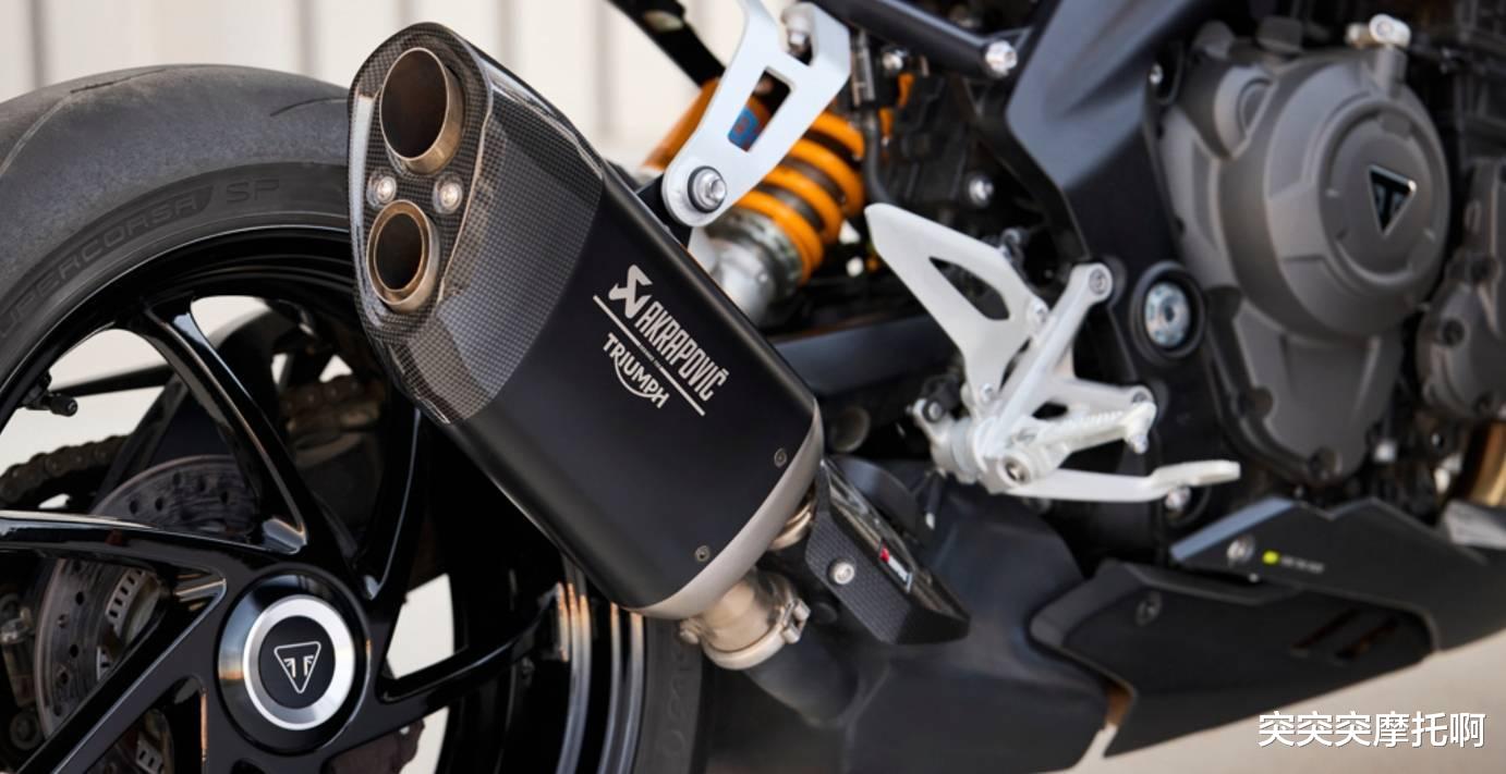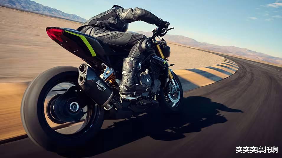 新款Speed Triple 1200 RS依旧搭载一台实际排量1160cc的直列三缸水冷引擎,最大功率134.6 kW/10,750 rpm,最大扭矩128Nm/8,750rpm,最大马力183匹,相较于老款在马力和扭矩上3PS与3Nm。并且新款采用了新款Free-Flowing排气管,具备更轻更小的风阻表现,如果你还觉得不够帅那么官方也提供了Akrapovic排气管。