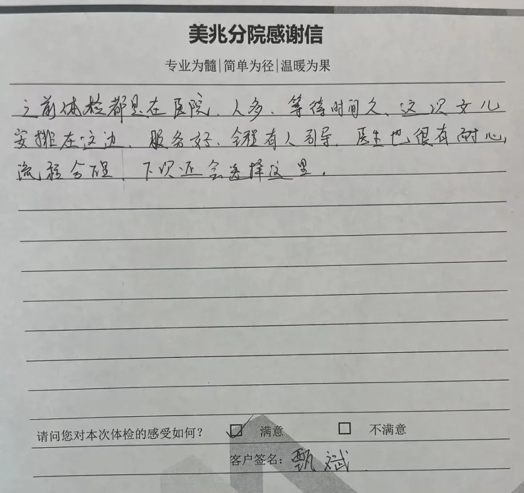 体检单子上的项目是严谨的,可这人情味儿与专业服务,是温暖的。这实实在在的服务好、环境好、流程好的体验,像冬日里捧在手心的一杯热茶,暖人心脾。这大约便是个人客户乐意来、回头客多,也是企业放心选择合肥美年大健康作为企业团检合作伙伴的缘由罢?