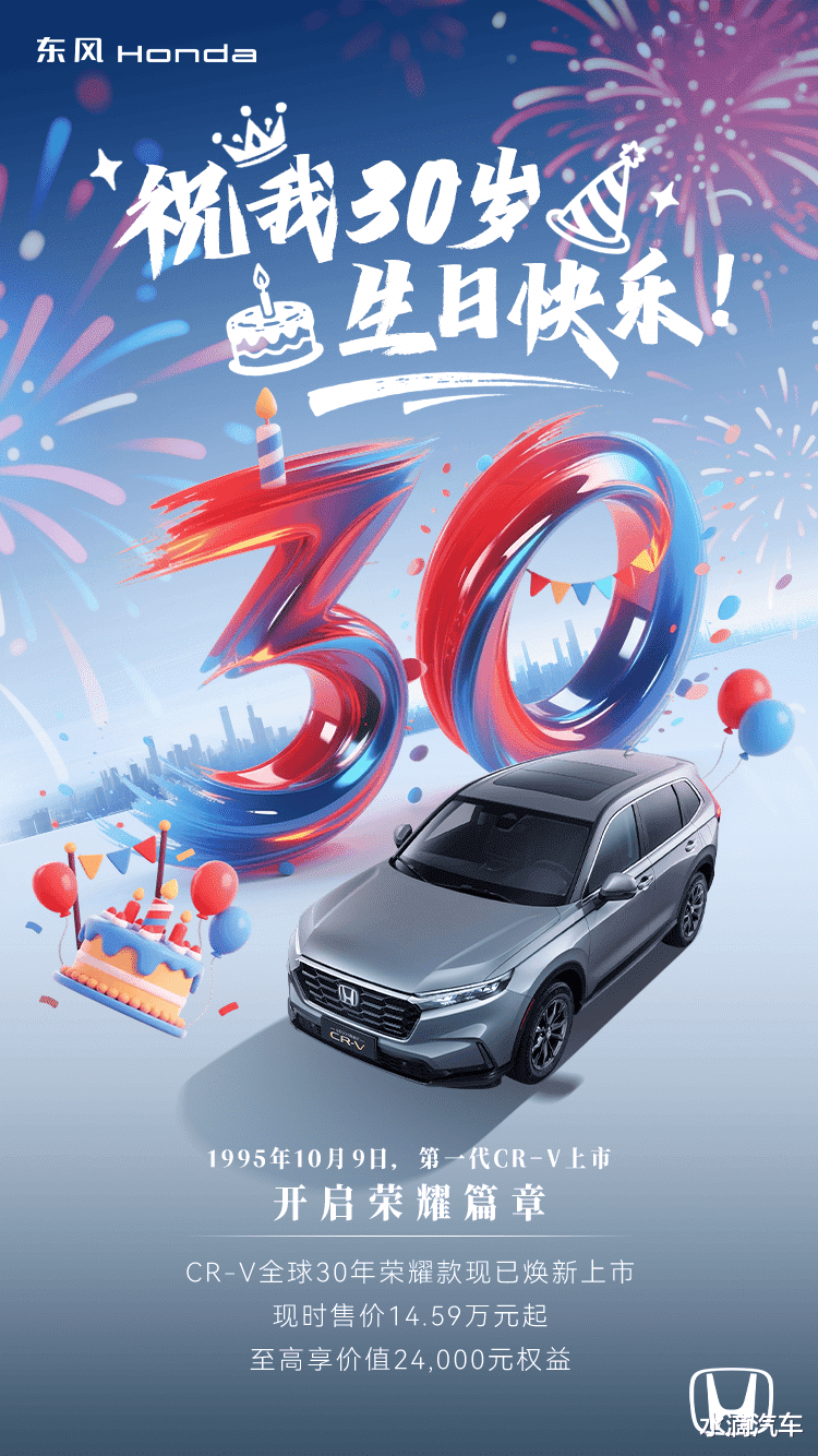 三十而已,仍是少年。三十载风雨兼程,CR-V从未停止进化的脚步。它从一台车,成为一种现象,一个符号,一种生活方式。它好开、省心、安心、舒心,它不仅是家用SUV的标杆,更是千万家庭出行的忠实伙伴。