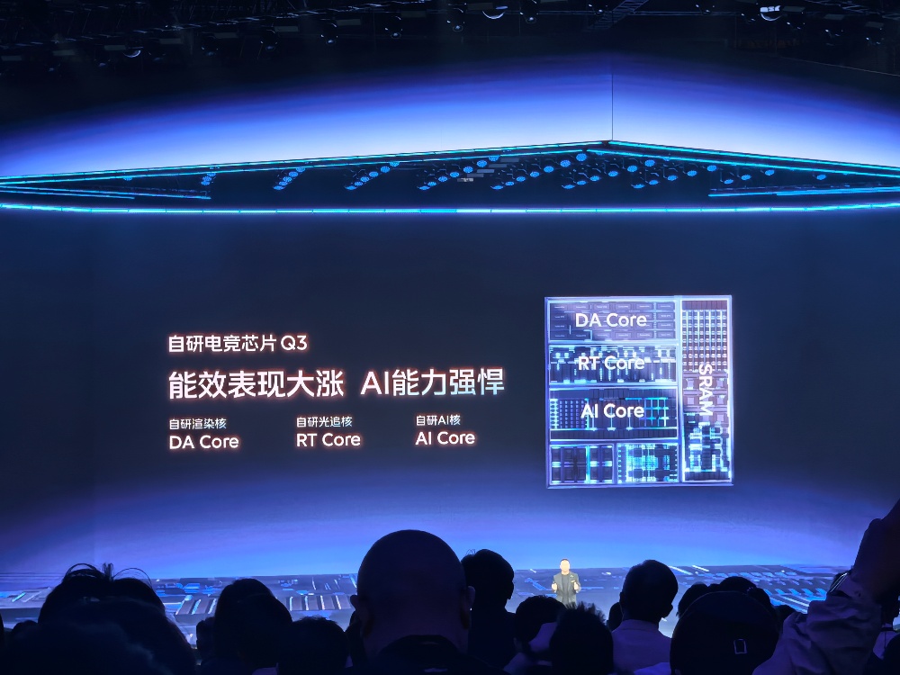 iQOO 15还搭配自研电竞芯片Q3,通过自研渲染核、自研光追核和自研AI核,可以让手机端大世界游戏的画质和光影效果更加真实,以一半的性能开销,达成比肩PC的游戏画质。