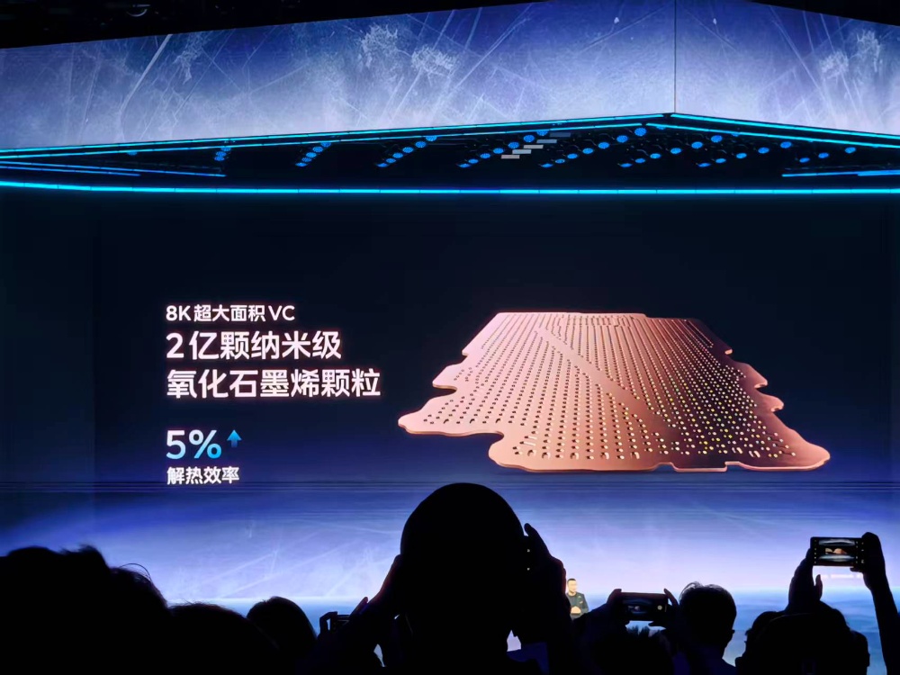 三、散热效率提升5%,用iQOO 15打一小时原神都不烫手iQOO 15采用8K超大面积VC,内含2亿颗纳米级氧化石墨烯颗粒,散热效率提升5%。其屏幕内部和电池上内置两层高导热石墨,导热系数2000W/m.K,导热面积超14000mm²。