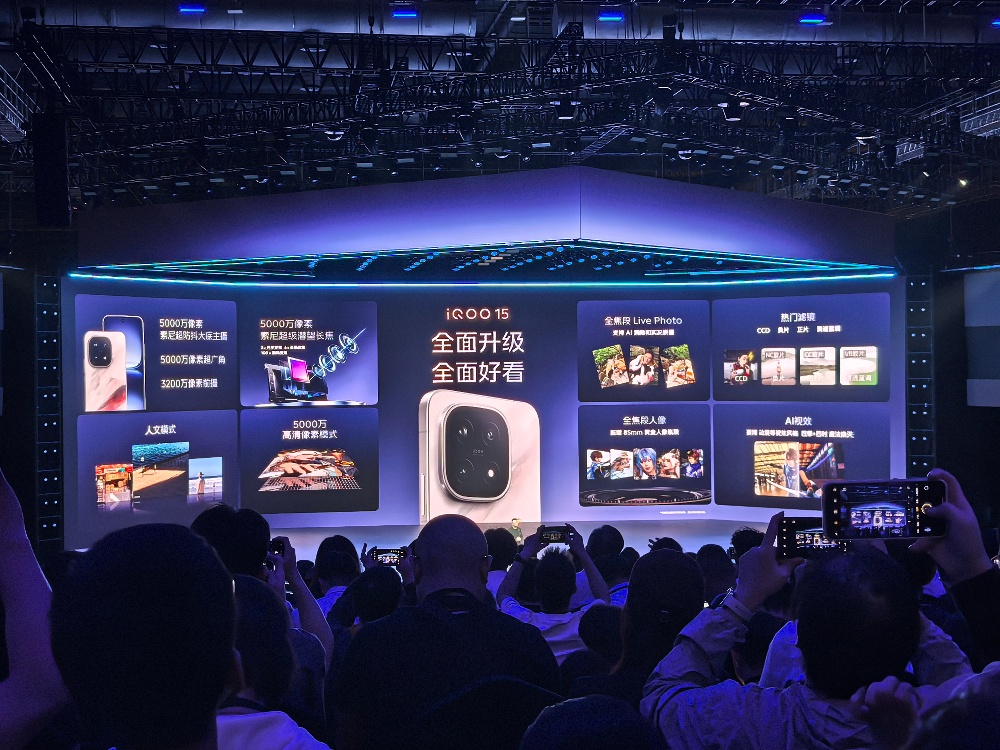iQOO 15搭载5000万像素索尼超级潜望长焦,新增85mm人像焦段,livephoto升级到2K画质,还能AI消除路人。