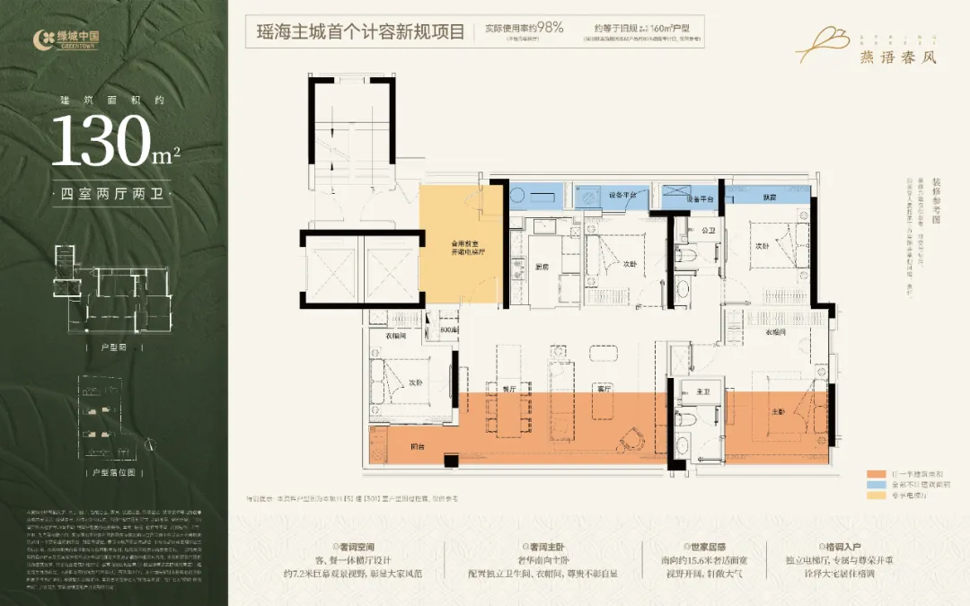 进入它的销售展厅,第一眼就去看了户型图,建面约130㎡户型做了大四房,建面约97㎡做了三房两卫,两个户型的实际使用率都高达98%,这倒让我有点意外,不只是保留了绿城的杭州水准,甚至在得房率上比杭州绿城的盘都高出一大截。