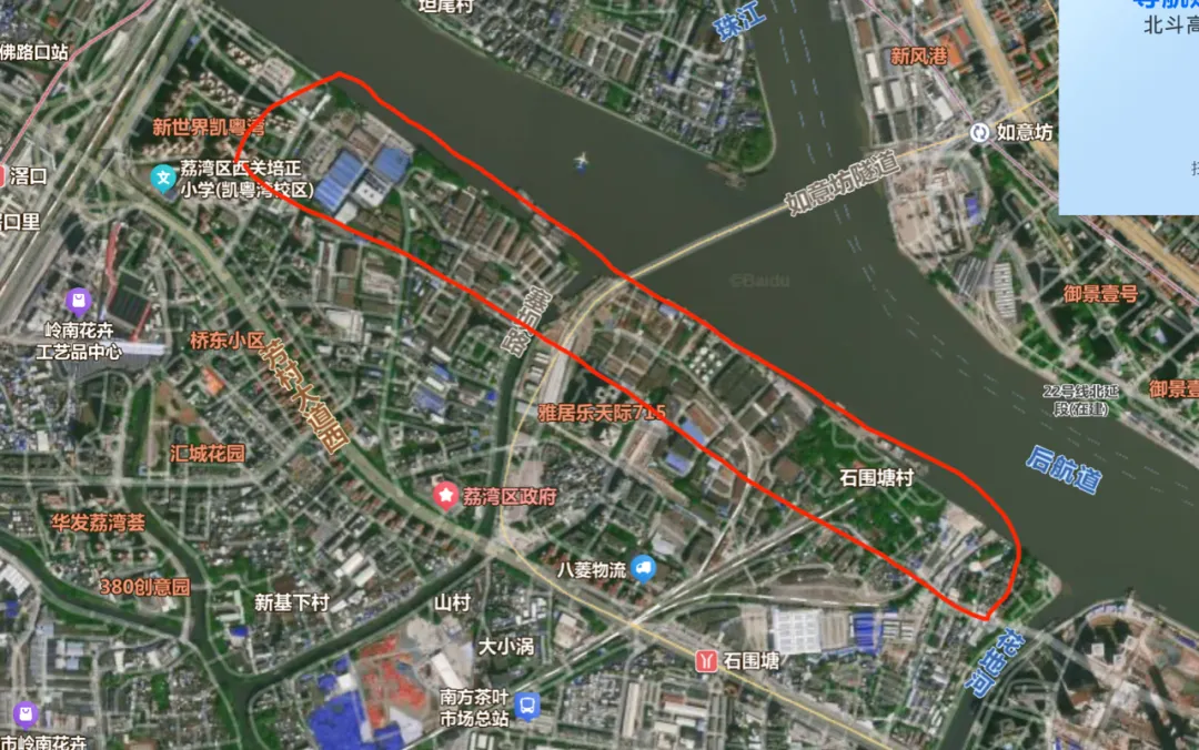 短期来看,应该是白鹅潭万象城一路到珠江天悦的内湾属于荔湾第一阶段呈现,长线,则是凯粤湾到白鹅潭这一部分。