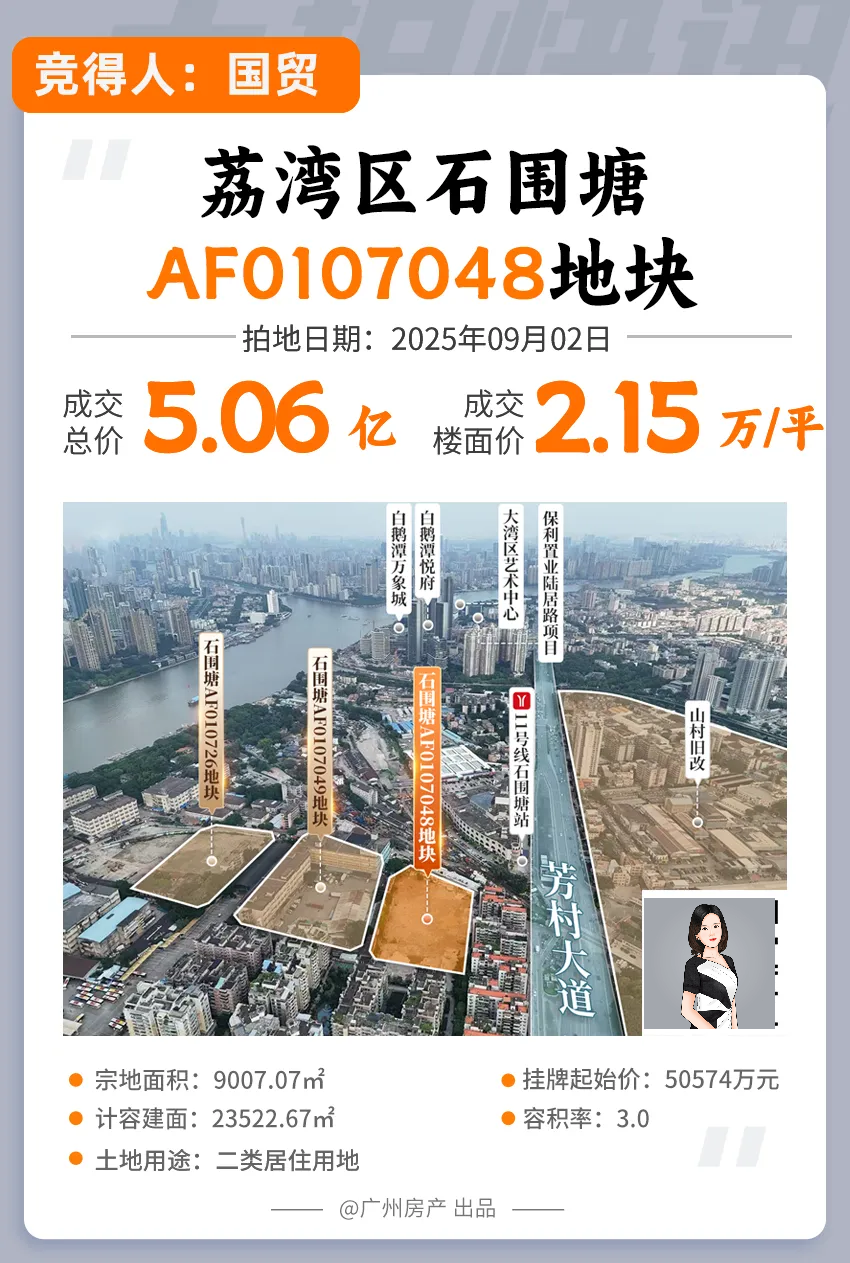 靠近荔湾区府,11号线石围塘地铁站,地块不大,宗地面积9007平,建筑面积23552平,容积率3。