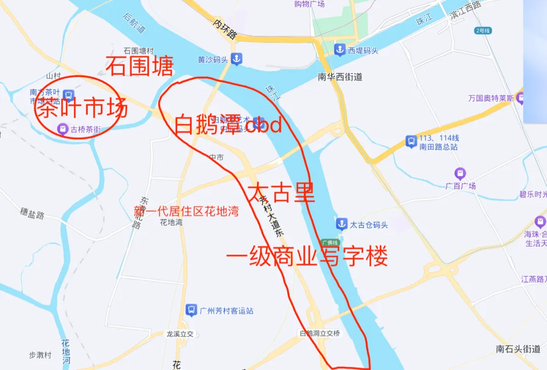 但是从整个荔湾的城市规划来看,石围塘附近,山村规划是是茶叶市场升级,白鹅潭附近是cbd,太古里是商业写字楼,一路到广船都是商业写字楼规划。整个荔湾目前的产业体量填充都有压力,不太填得满。