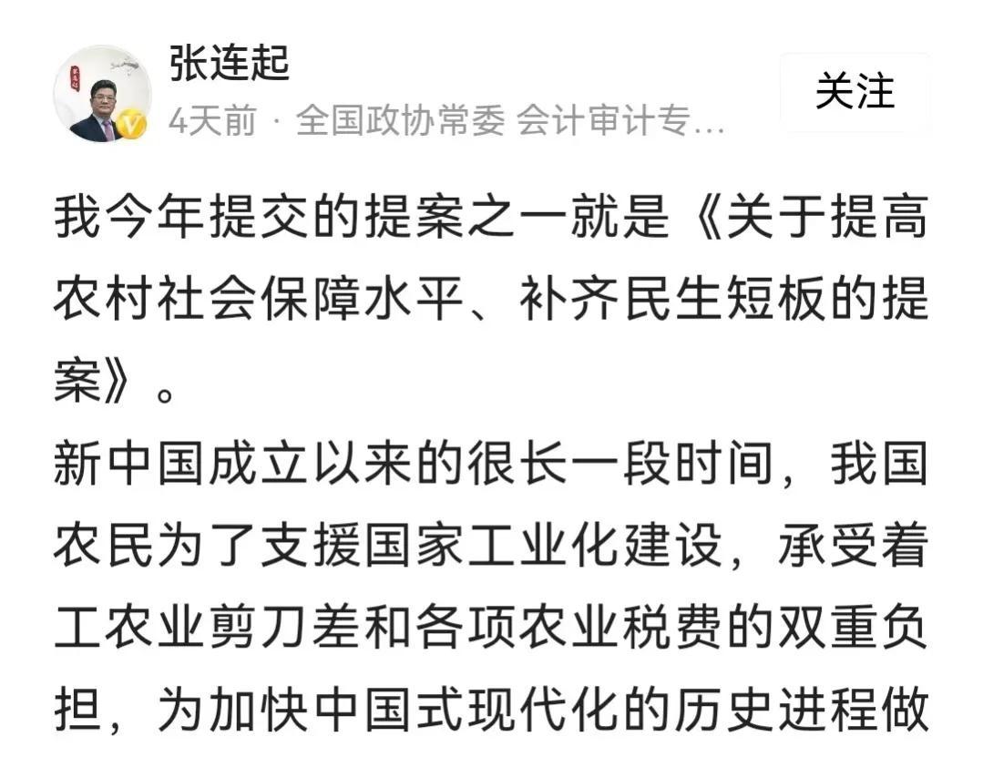 政协委员张连起,希望把农村老人退休金提升到800到1000元。不得不说他挺有人间大爱,目前农村老人退休金每个月只有一百来块钱,能干啥用啊,邻居来一场红白喜事随礼都得三五百块钱了。少了就被人瞧不起,说闲话,来个亲戚一顿饭就是二三百打底。