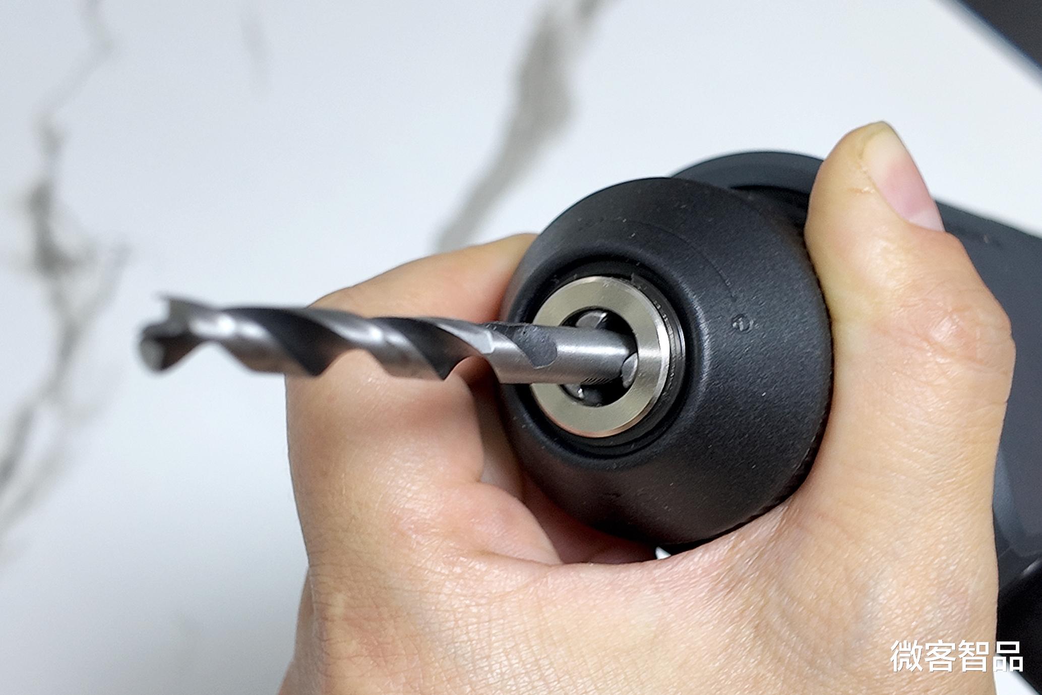 得益于主机搭配的棘轮式自锁夹头,放入钻头或批头后咬合紧密且不晃动,能够轻松应对高负荷、高频率的钻拧需求。