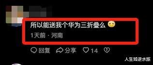此外,还有观众在评论区直接“许愿”,有网友留言:那么能给我一个华为三折叠屏吗?