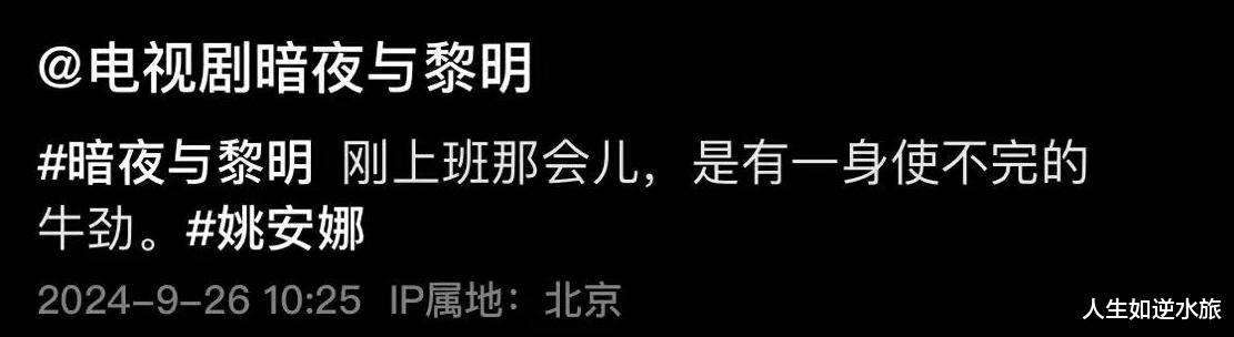另外,《暗夜与黎明》的官方账号还特别发布了一段关于姚安娜的宣传视频,网友们在观看后纷纷表示:打扰了。