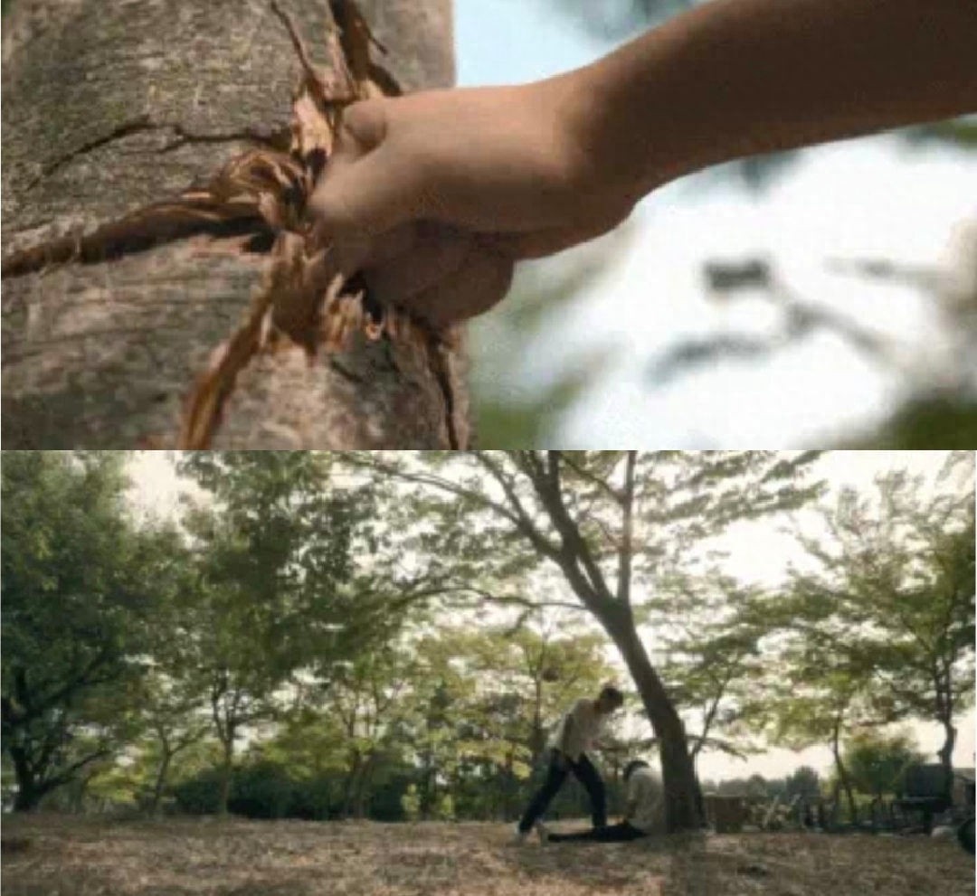 与此同时,班上的混混偷偷跟踪喜秀到了换衣室。班长看到后直接叫住混混,混混很是生气,将班长约到一处隐蔽的树林里打架。