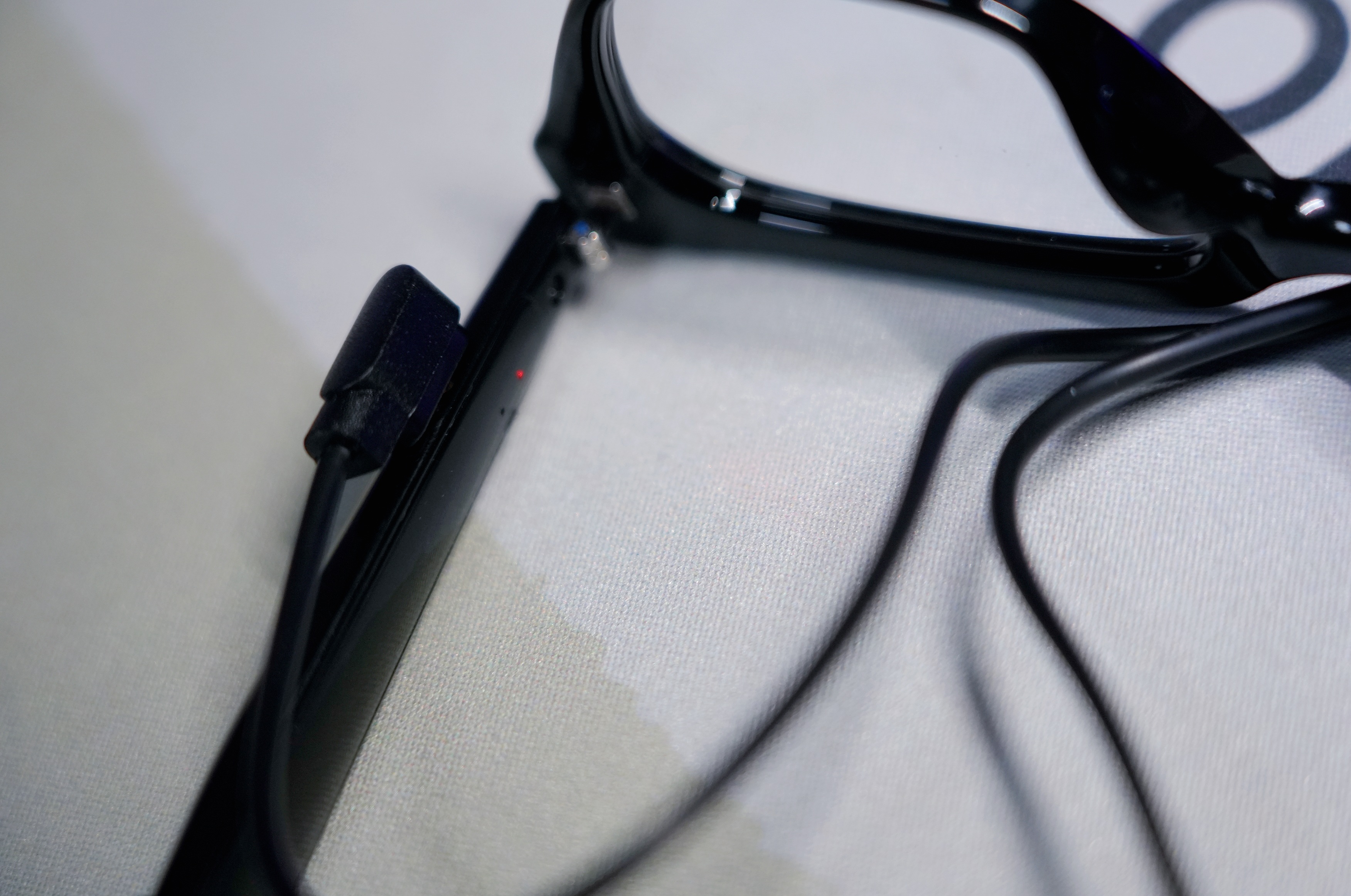 磁吸快充也特方便,之前用的某款智能眼镜得插线充,接口还特别小,晚上摸黑插半天插不准;X01只要把磁吸充电柱往镜腿触点上一靠,咔一下就吸住了,红灯亮着就是在充。早上起来发现没电,趁煮咖啡的15分钟充上,就能撑到中午,一杯咖啡的时间满血复活,这效率绝了。