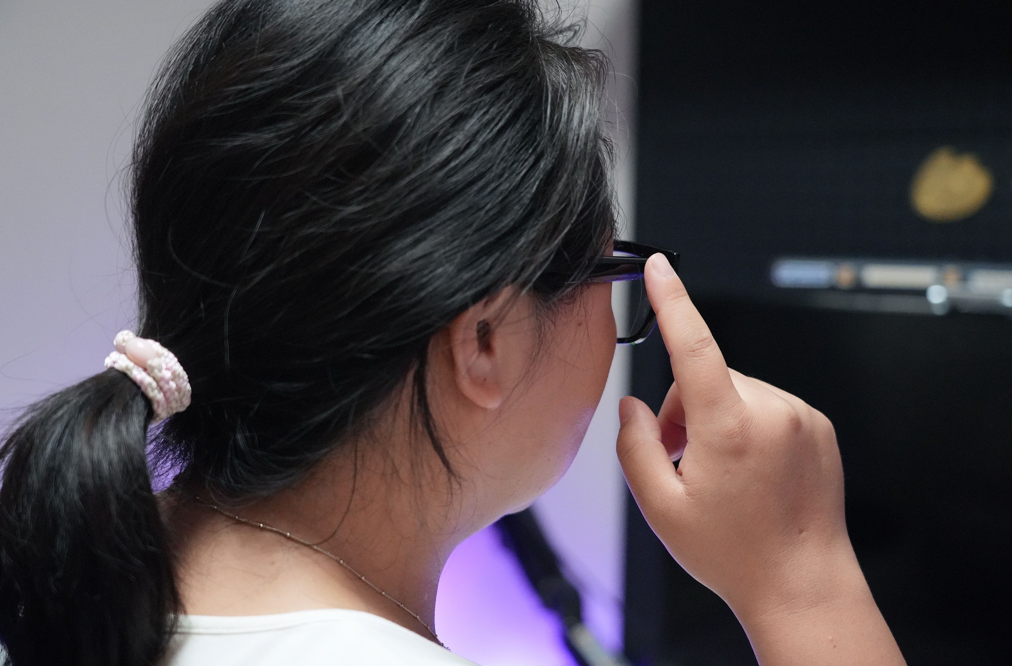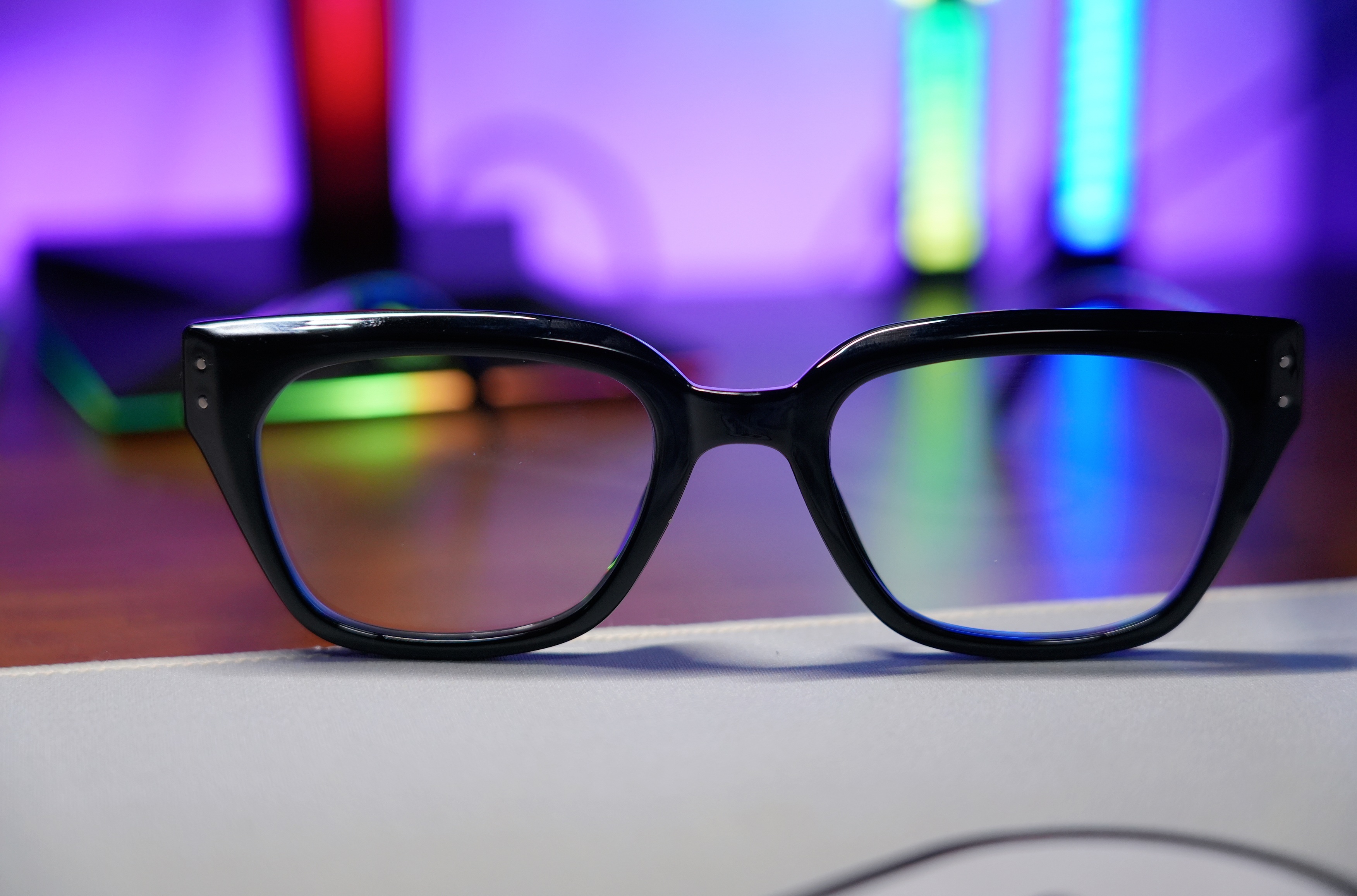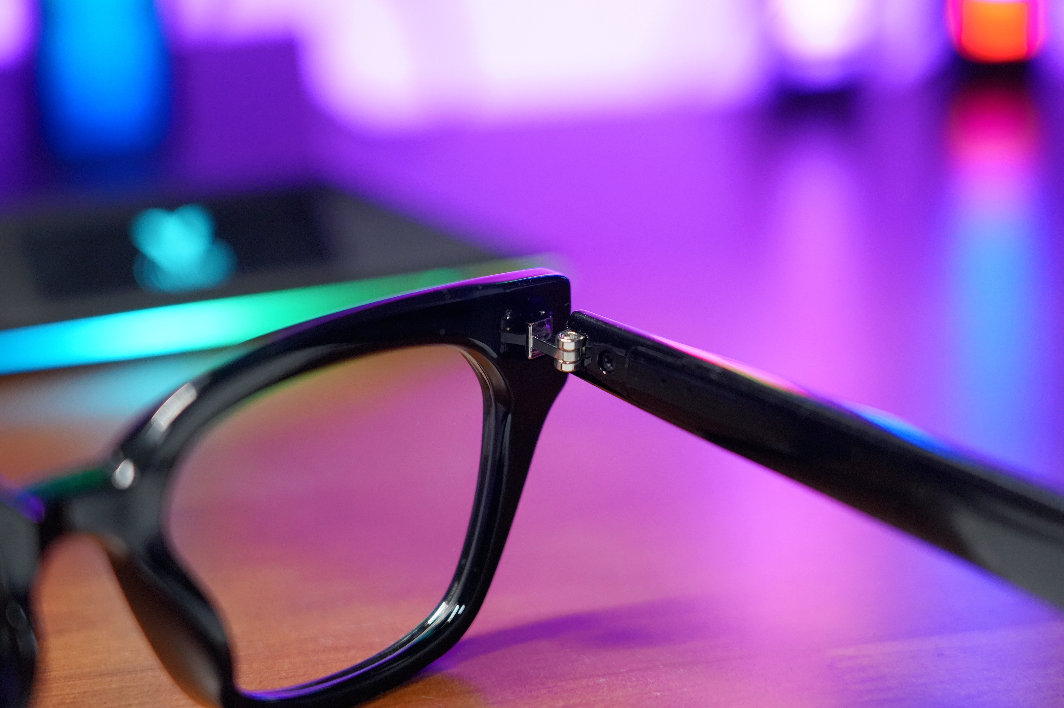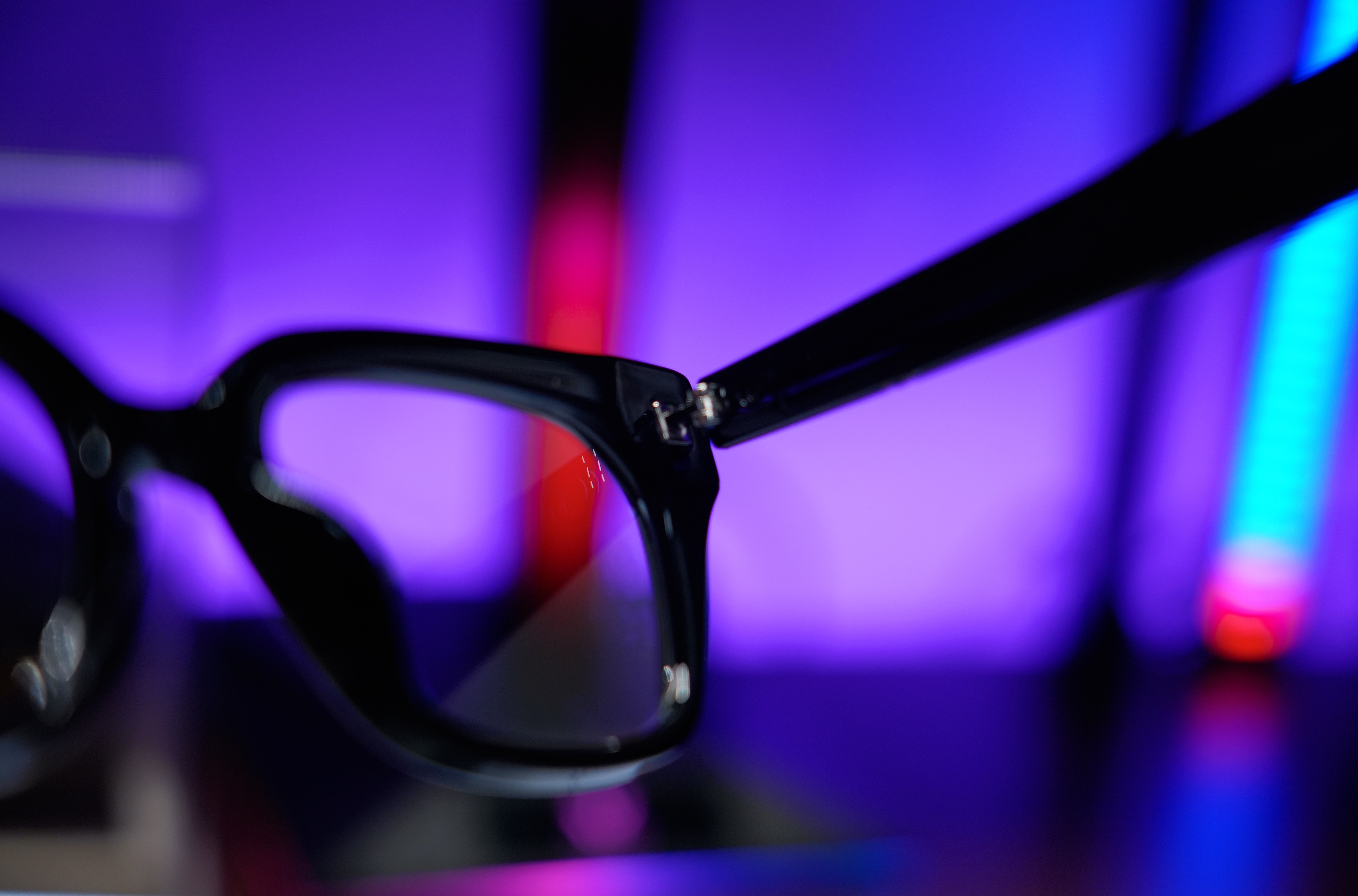 先聊聊最直观的佩戴感,毕竟智能眼镜要是戴着不舒服,再强的功能也白搭。露声X01才38克,比我之前戴的普通太阳镜还轻,用的是TR90材质镜框,软乎乎的但不塌。之前戴同事的某品牌智能眼镜,上午戴俩小时,鼻梁就压出红印子,中午趴在桌上睡会儿还硌得慌;但X01我从早上8点戴到晚上6点下班,中间还夹着午休,鼻梁上啥印子没有,甚至有时候忙起来忘了摘,摸脸才想起哦还戴着眼镜呢。