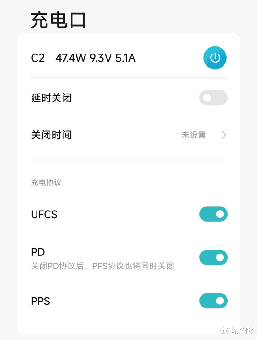 进入充电口的设置,则可以开关各个接口,对接口进行协议设置、设置定时关闭等。