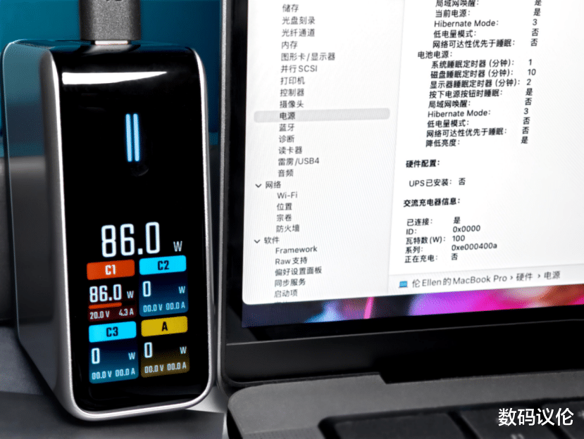 给M1 Pro的14英寸Macbook Pro快充,也能握手100W PD,充电头实时显示了86W。