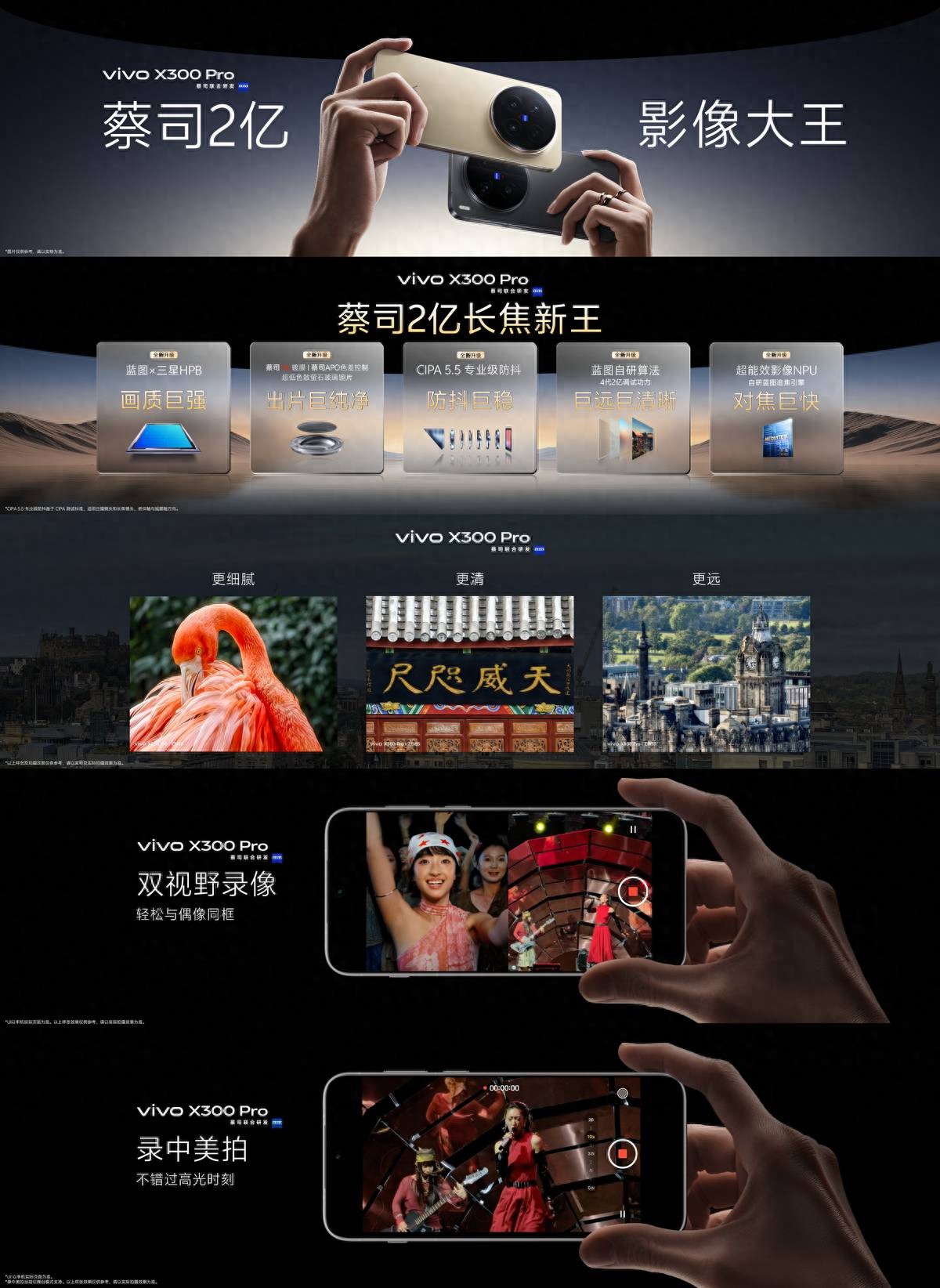 专业视频创作者和影像发烧友们请注意,vivo X300 Pro今天正式开售。这款蔡司2亿影像「大王」在视频创作上持续领跑行业,挑战安卓视频上限,带来了十大升级。Pro版的核心优势在于其主摄搭载了蓝图×索尼LYT-828云台级主摄,拥有1.5°的大角度云台级防抖、CIPA 5.5专业级防抖,真正做到主摄为视频而生。同时,蓝图自研影像双芯VS1和V3+双芯协同,分别负责图像信息的预处理和后处理,让视频拍摄的场景覆盖更广、成片速度更快、出片效果更好。