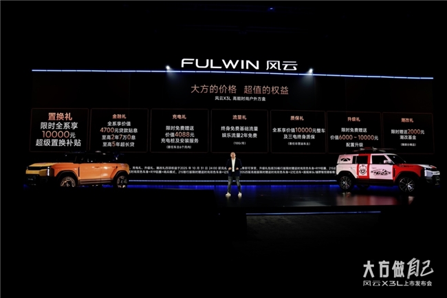 9月17日,风云X3L于成都举行上市发布会,正式售价为10.99万元起,共推出四个版本车型,135畅行版售价10.99万、215远行版售价12.19万、215智行版售价13.39万、205四驱高能版售价14.99万。同时,六大官改版型也惊艳亮相,释放终极个性,演绎方盒的无限可能。