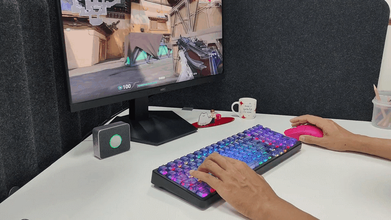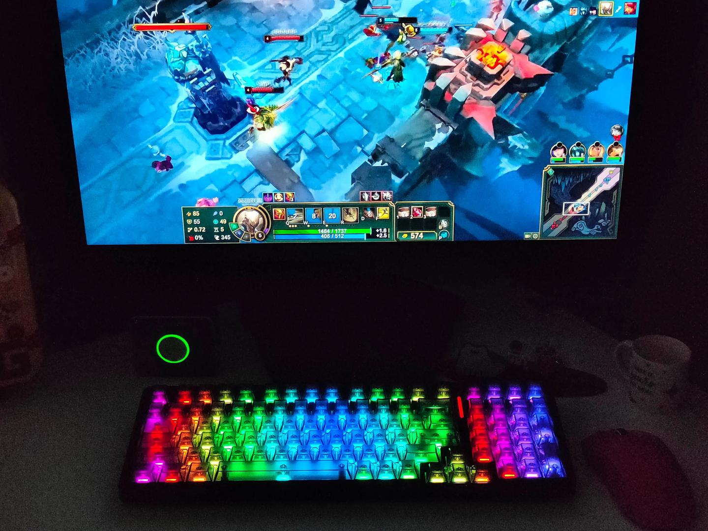 当ARGB 灯效才叫绝,光线不乱漏,均匀漫反射,开音乐律动模式时,灯光跟着节奏渐变,桌面氛围一下柔下来。而且是原厂高度键帽,我这种用惯标准键位的人上手就会,磨砂手感不打滑,比之前的键帽耐打油多了。