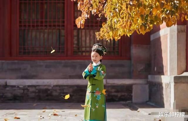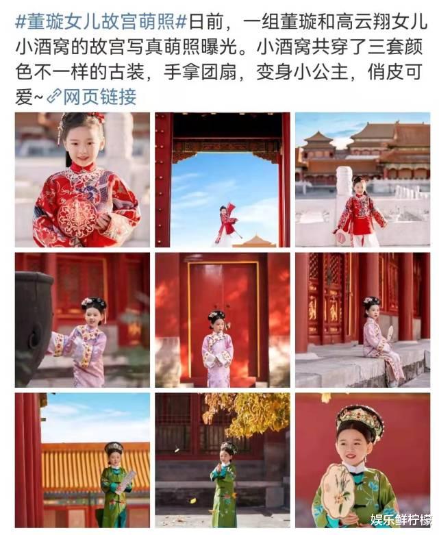 然而这组照片和不久前董璇女儿小酒窝在故宫的一组写真不谋而合,小酒窝共穿了三套颜色不一样的古装,手拿团扇的她变身小公主,俏皮可爱。
