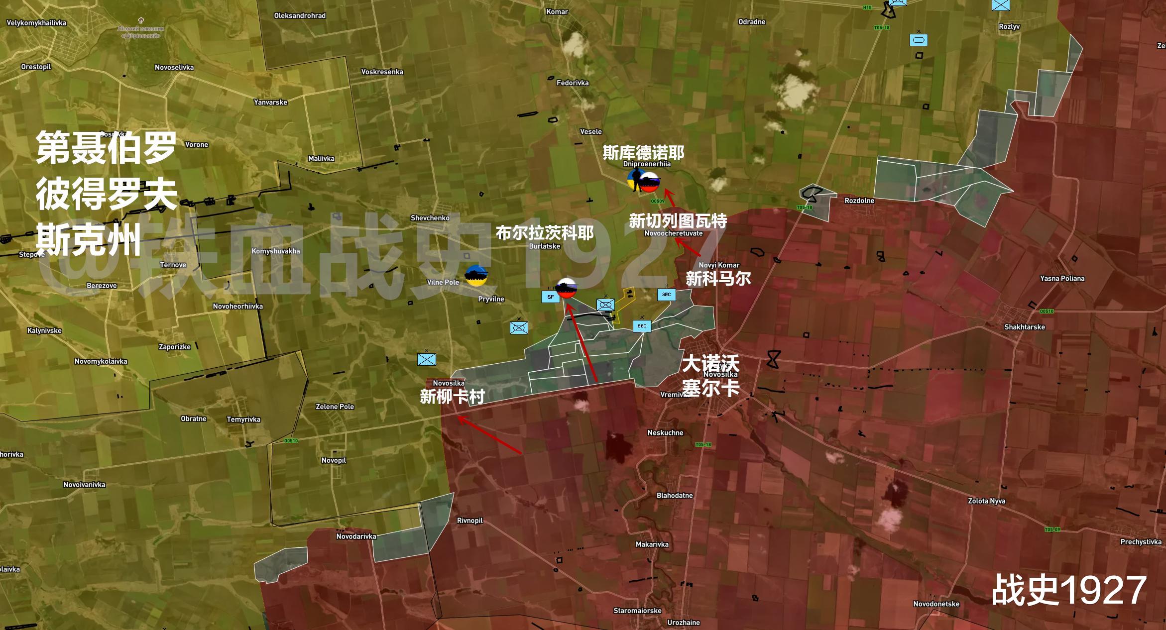 在大诺沃塞尔卡方向,据美国战争研究所2月22日介绍,俄军曾在一月底夺占大诺沃市区后就暂停了进攻,并将一部分部队调往了库拉霍夫以西的战线。但就在最近几天,俄军恢复了在大诺沃地区的进攻,俄机械化部队在电子战系统的支持下,突破了乌军用无人机构筑的防御。俄第5坦克旅从莫克里亚利河的干涸地段取得突破,攻入并占领了新切列图瓦特村,目前,俄军正向临近的斯库德诺耶推进。