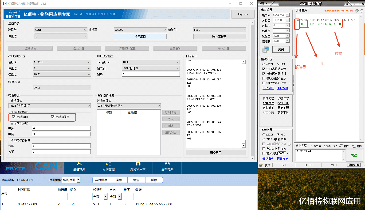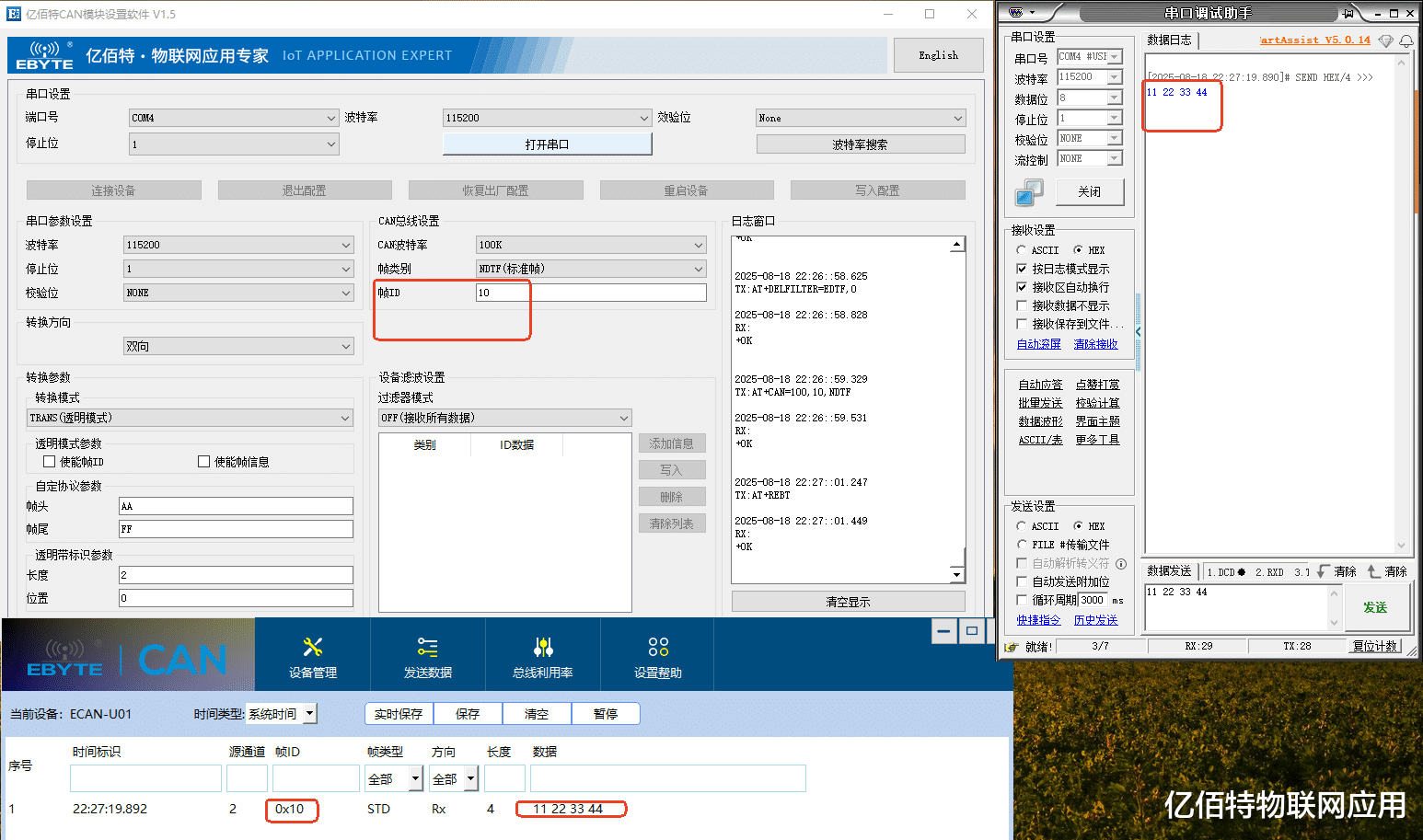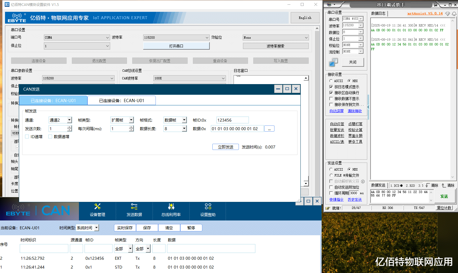 (2)CAN发送数据到串口: