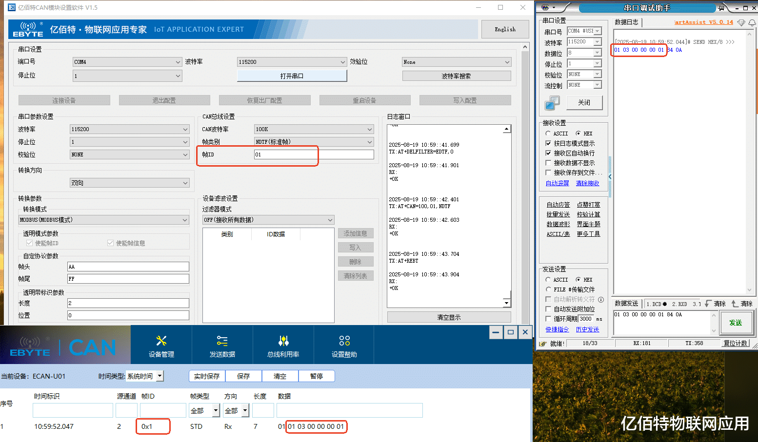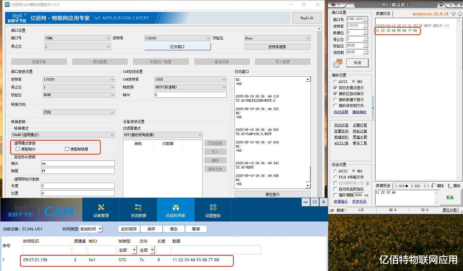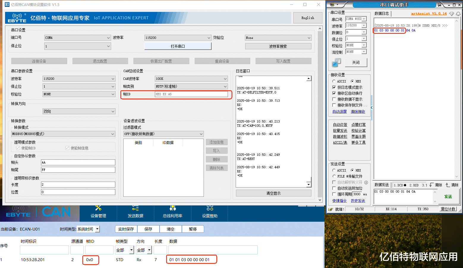 (2)CAN发送数据到串口: