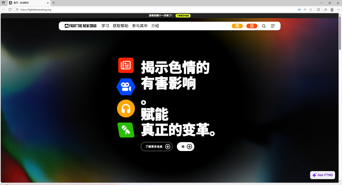 7、Fight The New Drug这是一个帮你“戒色”的网站!如果你有朋友经常看手机上的擦边内容,这个网站能帮他重新认识“色情的危害”。里面有大量真实案例、科学数据和短片,用科学方式解释色情对大脑和心理的影响,非常适合自我调节或帮助他人改善习惯。