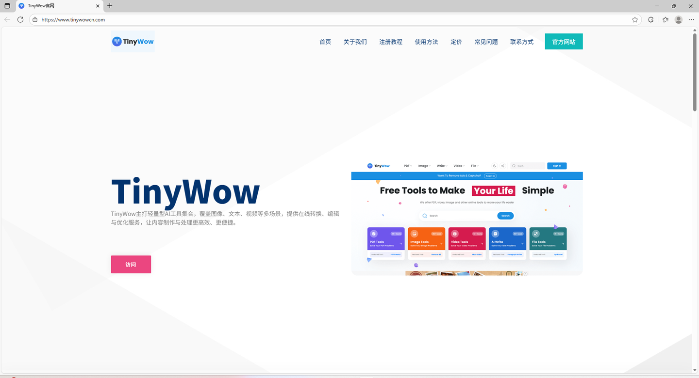 8、TinyWow这是一个完全免费且不用登录的超级工具网站。网站整合了超过 200 多种强大功能,包括 PDF 工具、图像工具、AI 写作工具、视频工具、文件工具等,几乎所有办公、学习中会用到的功能,它全都有,可以说是轻松拿捏市面上大部分付费工具,上传的文件会在一小时后自动删除,保护你的隐私安全。网站无需注册、打开网页即可使用,完全免费,非常好用。