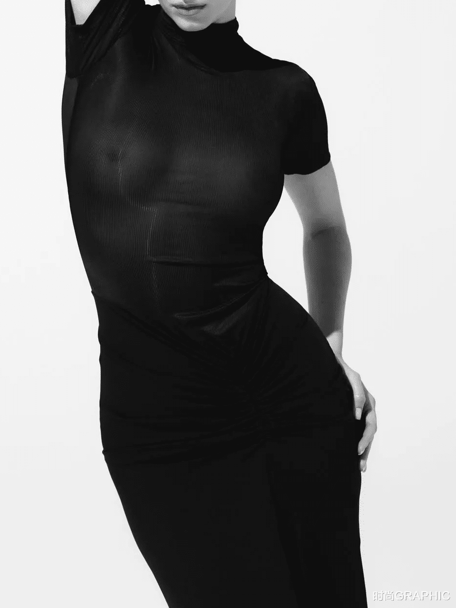 照片中的肯豆,身穿一袭黑色蕾丝透视裙,轻薄材质几乎透视出她每一寸肌肤,性感得让人无从下手。尤其是在其中一张,她躺在沙发上,裙摆轻扬,曲线完美呈现,仿佛在无声地告诉我们:她是如何轻松驾驭“性感”的。