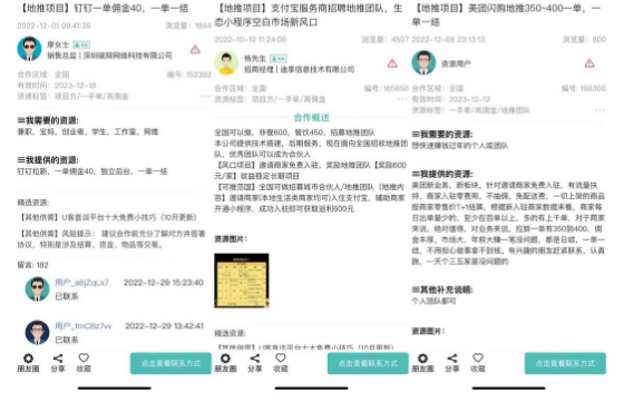 接下来了解一下地推和网推。地推即线下推广,主要在学校、夜市、快递站点、商超等人流量大的地方进行地面式推广宣传。网推则是线上推广,通过赏金平台、自媒体、微信朋友圈等方式宣传推广。成功完成一单作业,可获得几元、十几元、几十元甚至上百元不等的佣金奖励。