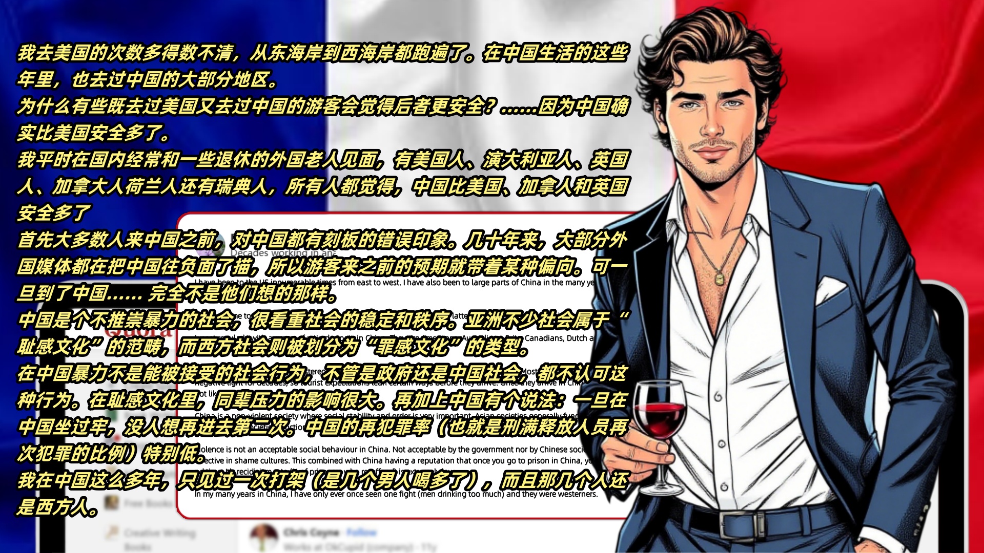法国网友Ray Comeau说道:我去美国的次数多得数不清,从东海岸到西海岸都跑遍了。在中国生活的这些年里,也去过中国的大部分地区。