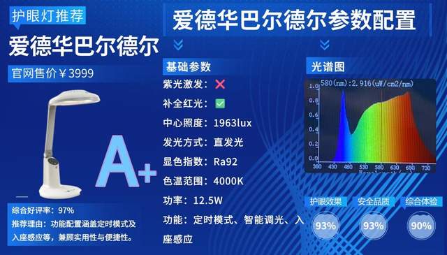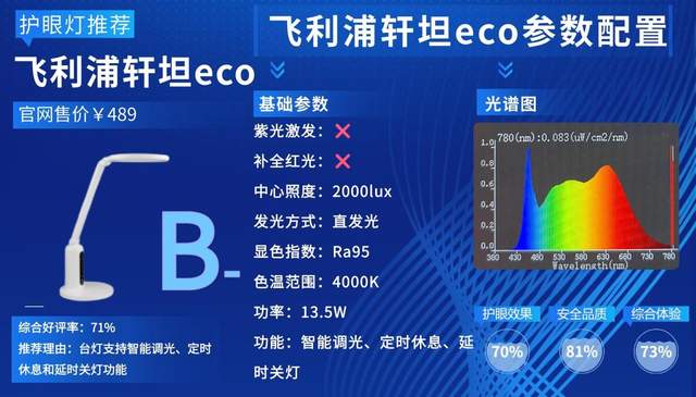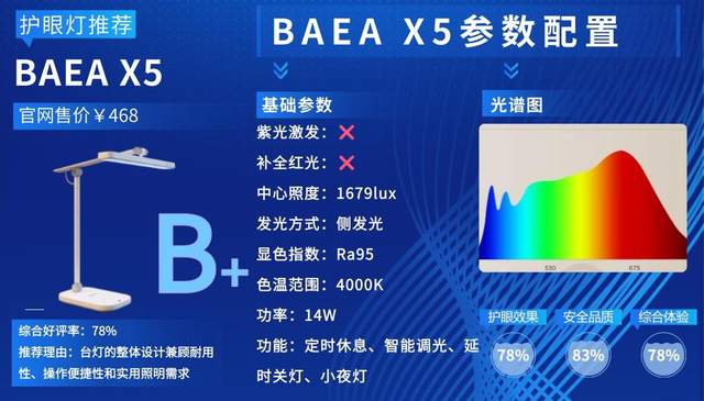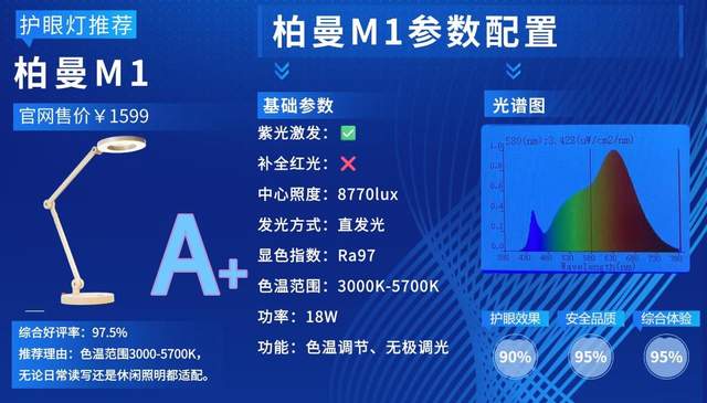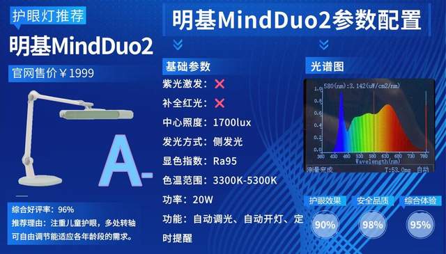 推荐理由:被大量眼科专业医护人员好评种草,500多位权威专业测评师评价其为护眼更养眼的护眼灯品牌!