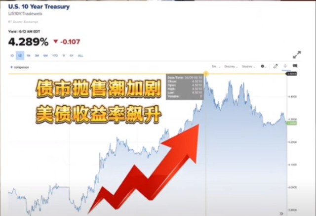 因为在衰退的环境中,美债收益率在2天交易日内,就从3.9%一度冲高至4.5的上方,达到了2027年金融危机以来最高的地位。