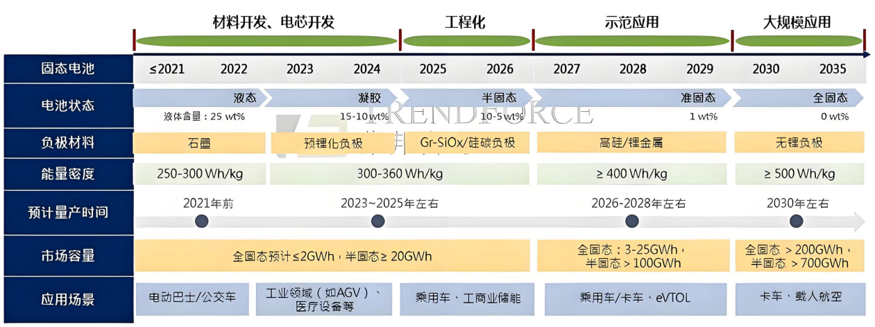 深企投产业研究院发布的《2025固态电池产业链研究报告》显示,固态电池正处在从实验室到产业化的关键拐点。预计到2027年全固态电池将进入小规模量产阶段,2030年后有望实现商业化。