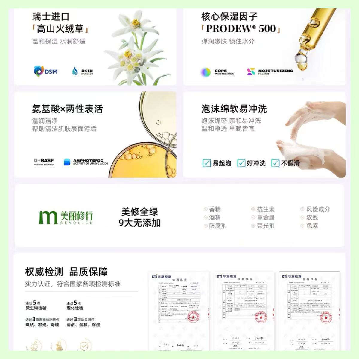 配方上真正做到了 “零负担”,不含酒精、色素、香精及争议性防腐剂,美丽修行全绿成分表和 EWG 安全认证双重背书,从源头规避了孕期护肤风险。不同于普通氨基酸洁面的单一清洁功能,它添加了复合氨基酸表活(茶椰油酰丙氨酸盐),既能温和起泡带走污垢,又不会破坏肌肤天然油脂层。甘油和透明质酸的加入,让清洁后保湿力持续在线,解决了 “洗后紧绷” 的痛点。