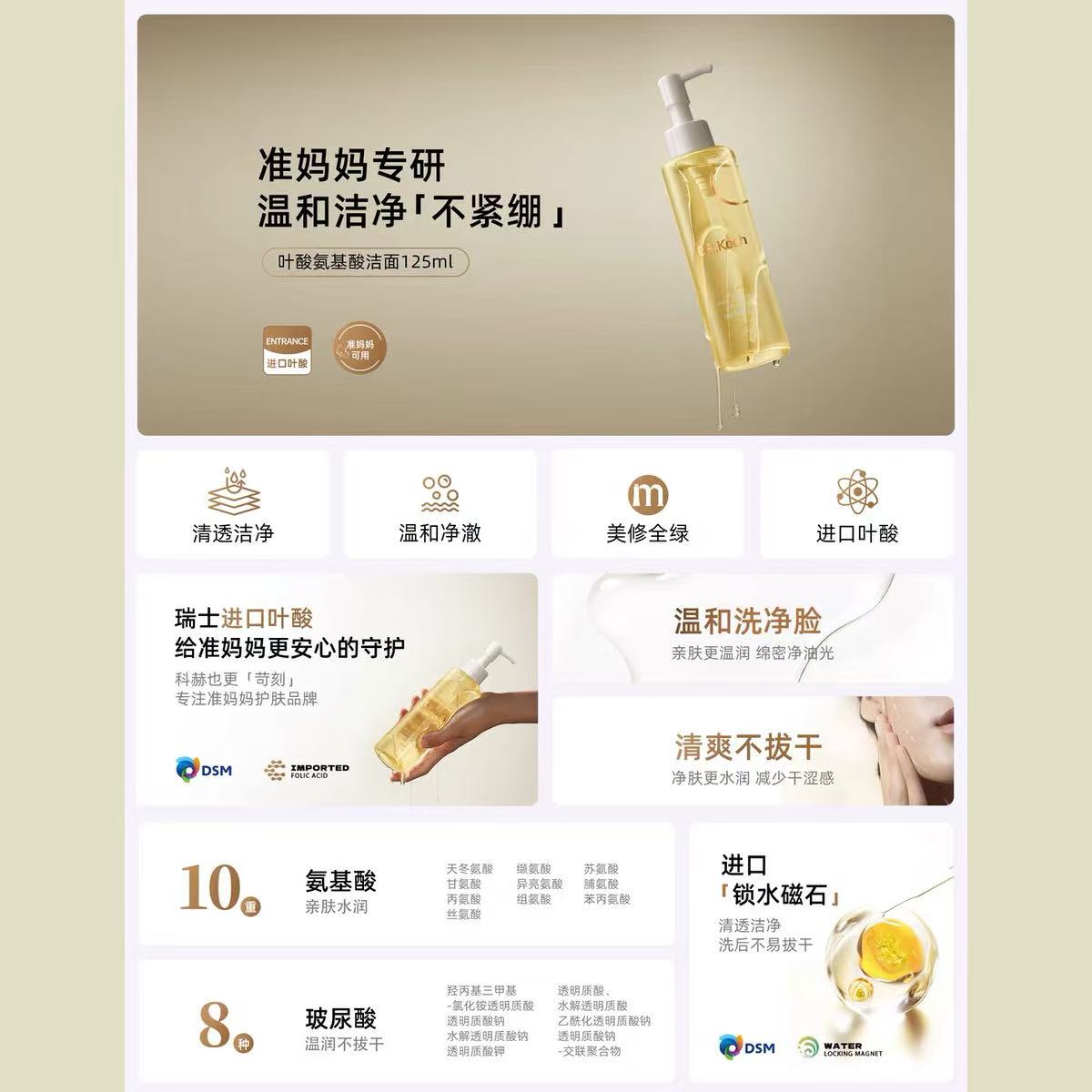 2.总结:按需选择适合你的洁面科赫洗面奶:全孕期适用,尤其推荐给敏感肌、干燥肌或有修护需求的孕妈,叶酸成分能全程呵护肌肤屏障。