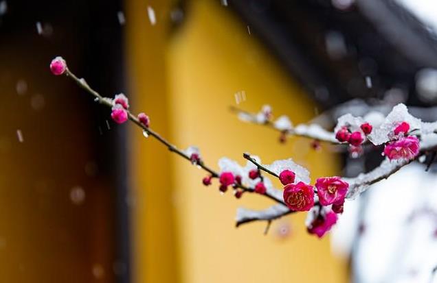 傲雪绽放:王安石的“墙角数枝梅,凌寒独自开。遥知不是雪,为有暗香来”,刻画了梅花在严寒中独自开放的坚韧姿态,以及暗香浮动的清幽气质,赞颂了梅花的高洁品格,也为冬日增添了一抹亮丽的色彩。
