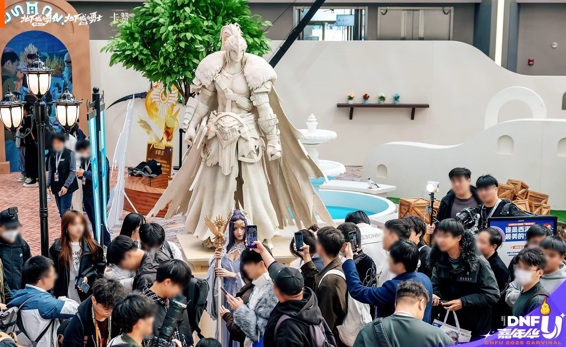 《地下城与勇士:卡赞》在嘉年华中设立了主题专区,包括卡赞雕塑、线下游戏体验区以及周边福利屋等多种互动形式,构筑了一个从虚拟跃入现实的沉浸式互动空间,吸引大量玩家驻足流连。